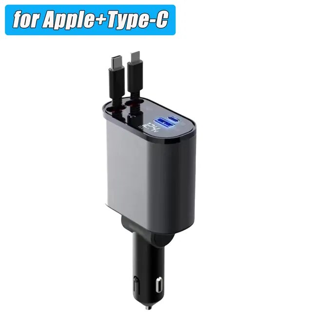 Keep your car clutter free with the retractable cables. Stay Organized and connected super easily while FAST charging all your devices. Offering lightning and USB-C adapters to make this a must have for an easier and safer drive!
