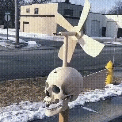 The jaw opens and closes as the blades turn in the wind. Will be sure to draw attention to your yard garden or patio. This spinner could make a great way to make your Halloween display really stand out.