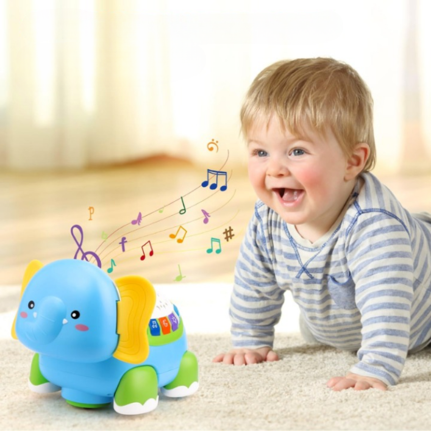TheTummyElephant – Light Up Crawling Musical Elephant makes tummy time fun and adventurous without making acomplete mess. The TummyElephant crawls forward. designed to encourage your little one to crawl after it while streng thening important muscles.