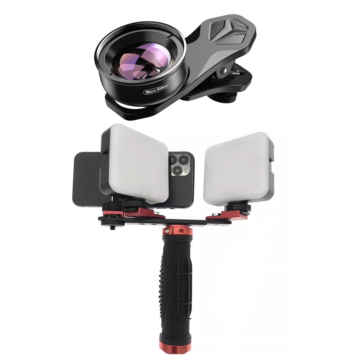Twin Light Phone Holder + Super Macro Lens 100 mm / 75 mm